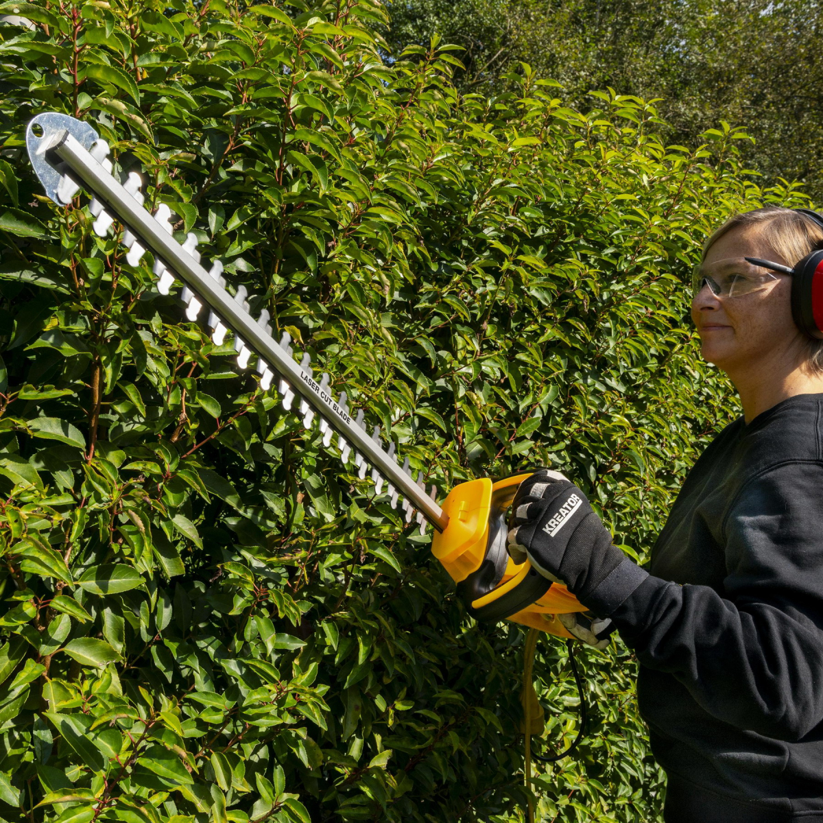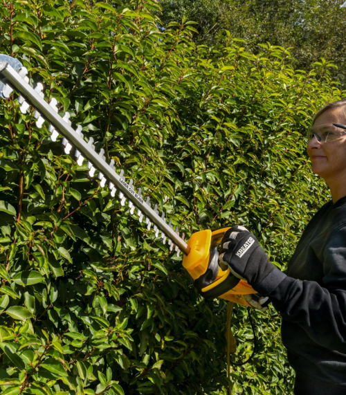 Tento elektrický plotostrih POWXG20081 od PowerPlus je vybavený 600W motorom, ktorý vám umožní rýchlo strihať živé ploty a kríky so skvelými výsledkami. Vďaka čepeli dlhej 610 mm ľahko zastrihnete malé až stredne veľké živé ploty. Jeho protibežné nože vám umožnia rezať vetvy s hrúbkou až 24 mm. Dvojčinná čepeľ sa skladá z dvoch samostatných čepelí pohybujúcich sa v opačných smeroch. Navyše sú to čepele rezané laserom a poskytujú lepšie výsledky rezania. Tieto elektrické nožnice na živý plot sú vybavené elektrickou bezpečnostnou brzdou, ktorá po vypnutí náradia okamžite zastaví pohyb nožov. Zaručuje vašu bezpečnosť za všetkých okolností. Pravidelným strihaním bude váš živý plot plnší a uhladenejší.