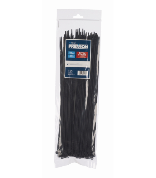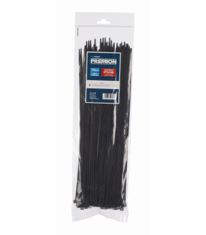 Táto sada PREP00037 od Premion obsahuje 100 ks čiernych nylonových sťahovacích pások 4,8 x 370 mm. Tieto extra pevné sťahovacie pásky majú vysokú pevnosť v ťahu. Použite ich k úhľadnému zviazaniu káblov alebo k ľahkému vzájomnému spojeniu predmetov. Úhľadne ukryte káble a vodiče napríklad vo svojej kancelárii alebo dielni tým, že ich zviažete pomocou týchto káblových sťahovacích pásikov. Navyše sú tieto sťahovacie pásky odolné voči UV žiareniu.