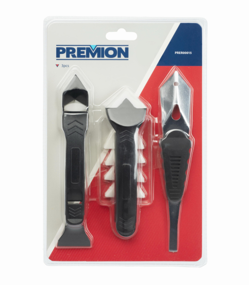 Táto 3dielna sada dokončovacích nástrojov na silikón Premion PRER00015 je nevyhnutná pri nanášaní alebo odstraňovaní silikónového tmelu. Použite škrabky na rýchle a úhľadné dokončenie škár.